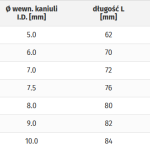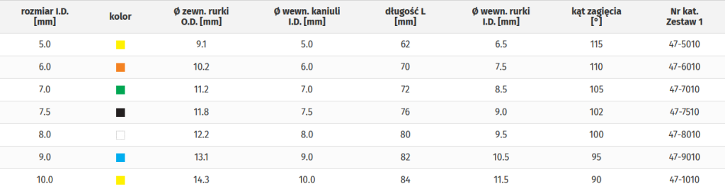 - 1 kaniula wewnętrzna z łącznikiem 15 mm, bez otworów fenestracyjnych