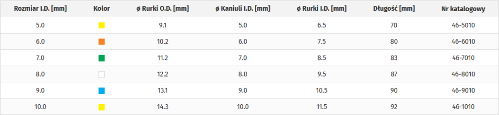 Zalety: Rurka w kształcie stożka, zwężająca się w kierunku końca dystalnego, wykonana z termoplastycznego, medycznego PVC. Idealnie dopasowane kaniule wewnętrzne o stożkowej budowie. Bagnetowe złącze zapewnia łatwość i pewność zamocowania kaniuli wewnętrznej i akcesoriów. Otwory fenestracyjne rozmieszczone na dużej powierzchni. Łącznik 15 mm zgodny z ISO. Miękki i elastyczny szyld …